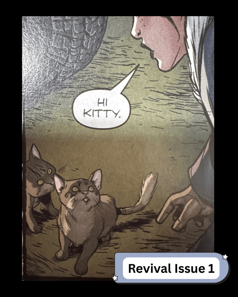 Let’s start with the art. I eat this style up every time. Mike Norton has an impressive list of creations under his belt, and I have a couple in my collection. The colors, line work, and panel layouts are the perfect frame to hold the story. I love how it has this disarming mask of humor, carrying the mystery of the Revivers.