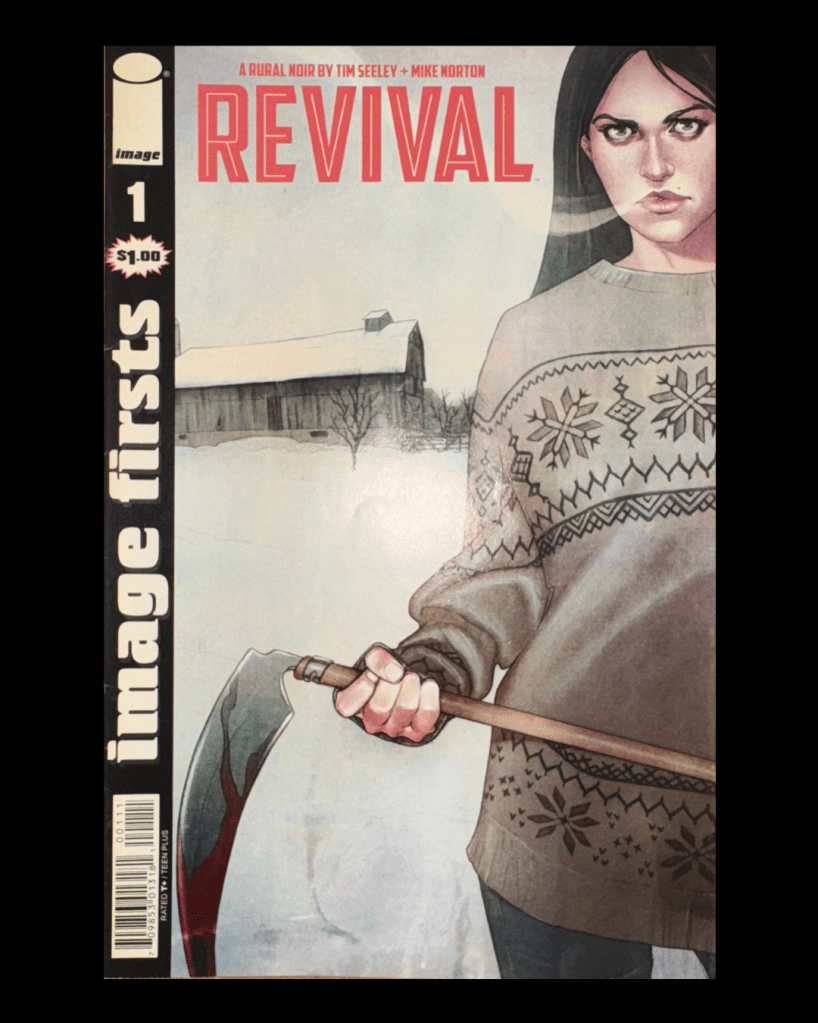 I grabbed this May 2013, Image First, about two years ago at a comic shop because of the writer and the suggestion from one of my best friends. Seeley did a Nailbiter/Hack/Slash One-Shot with Joshua Williamson. I posted a review for Nailbiter a little while back! With it being one of my favorite series, I was not surprised when Revival delivered a “rural noir” unlike anything I have ever read. If you look at my copy, you can tell it has seen some love.