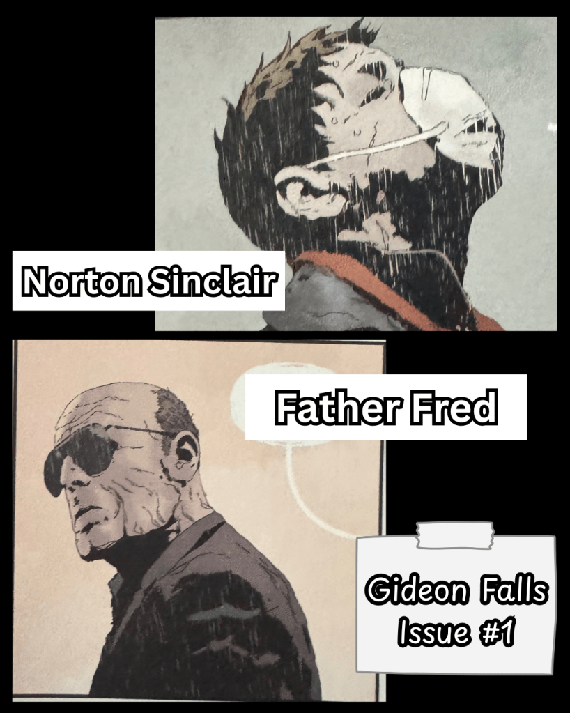 The story introduces us to two seemingly disconnected protagonists. In the city, Norton, a troubled man, obsessively collects pieces of trash he believes are part of a larger conspiracy. He refers to it as the Black Barn. Meanwhile, in a rural town, Father Fred is reassigned to a parish in Gideon Falls. Burdened by secrets and loss, their stories start to unfold. Both men begin to unveil connections to a mysterious structure said to appear only in the moments before tragedy.